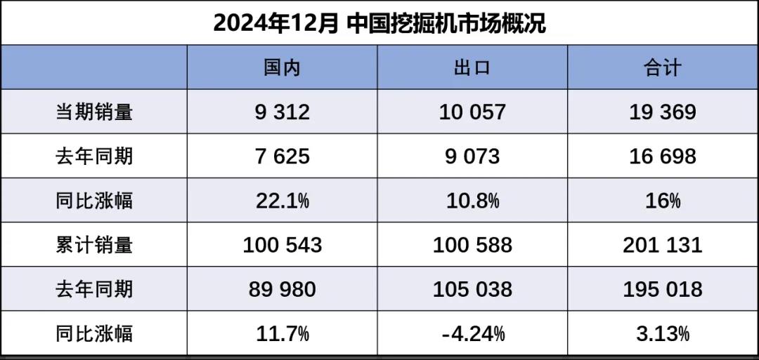 2025-01據中國工程機械工業(yè)協(xié)會對挖掘機主要制造企業(yè)統(tǒng)計,2024年12月銷售各類挖掘機19369臺,同比增長16%。其中國內銷量9312臺,同比增長22.1%;出口量10057臺,同比增長10.8%。2024年,共銷售挖掘機201131臺,同比增長3.13%;其中國內銷量10054…......